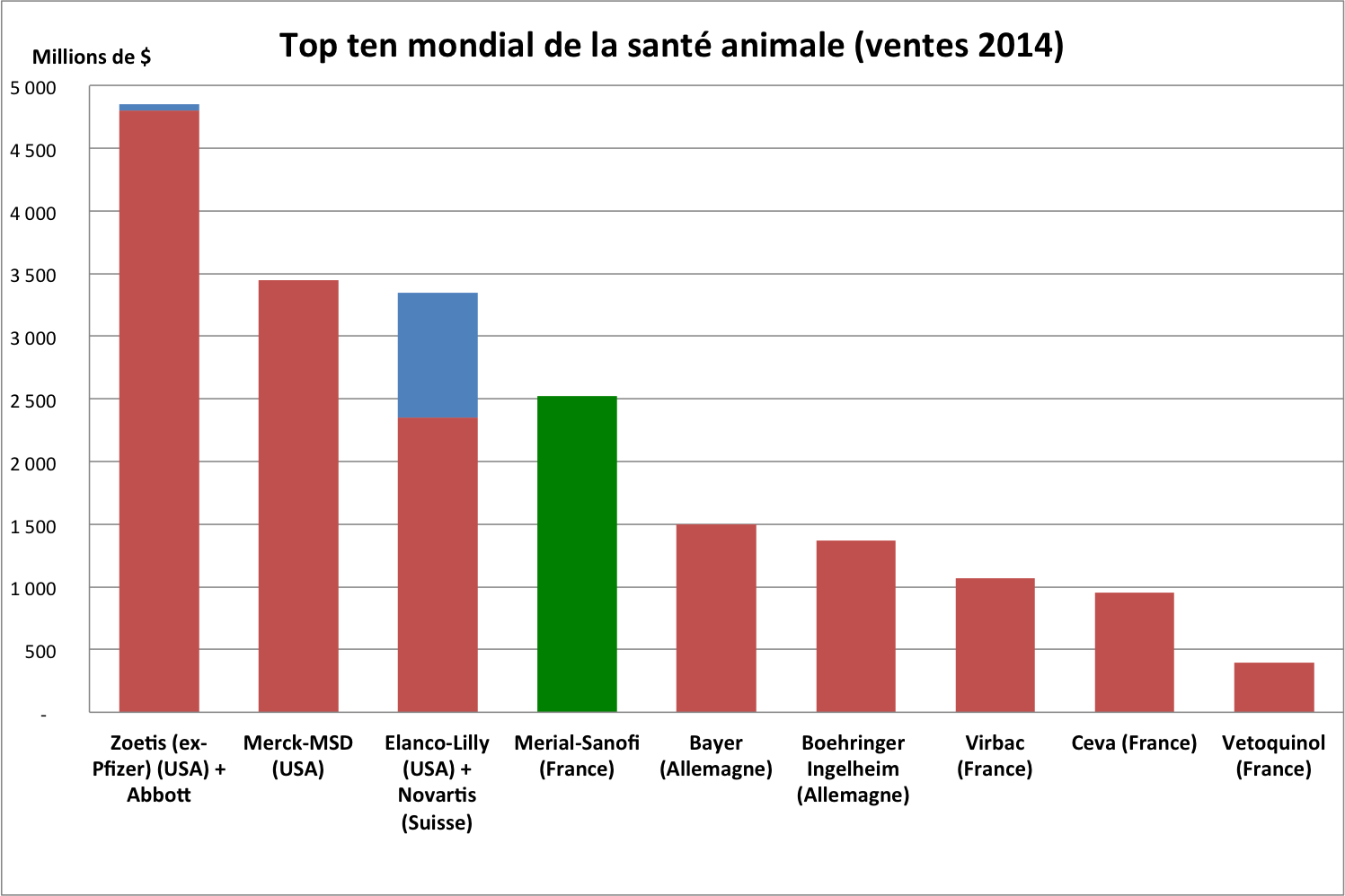 Aujourd’hui, les ventes de Merial s’élèvent à 2,1 milliards d’euros dans le monde. Sa cession serait valorisée à plus de 12 milliards d’euros selon des analystes financiers.