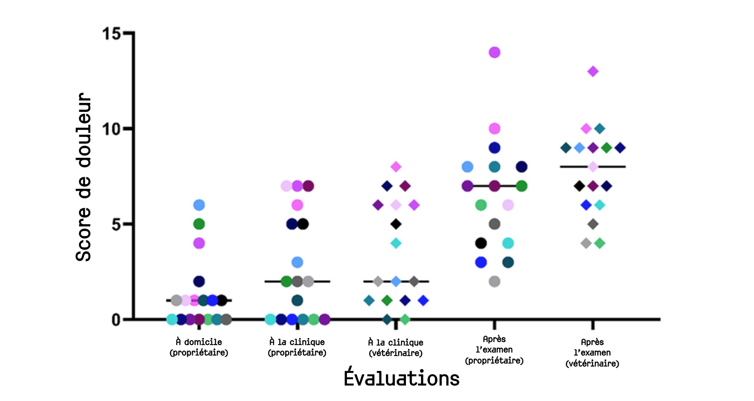 Ces résultats montrent ainsi qu'une expérience stressante suffit à augmenter les scores de douleur chez des chats non-algiques.